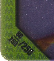 *Marvel did something bizarre with card #88 in this set as this is a special foil card, but was packaged in the Series 2 release, driving card collectors somewhat crazy assuming this was an ULTRA-rare card. Card #88 also serves as card #250 in Series 2. The card is #d " 88/250 /250" as this image shows: