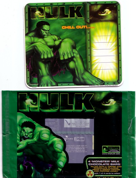 2003 Incredible Hulk Message card and wrapper from Kinnerton chocolate (U.K.).