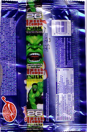 2003 Incredible Hulk Bubu Lubu wrapper and sticker from Ricolino, exclusively distributed in Mexico.