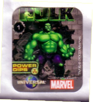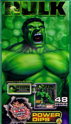 2003 Incredible Hulk Power Dips wrapper and sticker from Holland.