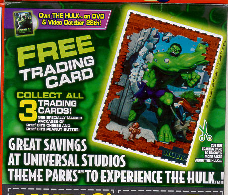 2003 Incredible Hulk Nabisco Ritz Bitz Peanut Butter Sandwiches (front and back) .