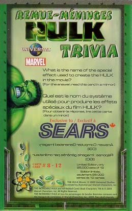 2003 Hulk Sears card #8 (front and back).