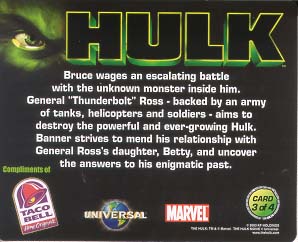 2003 Incredible Hulk Taco Bell motion card (front and back) .
